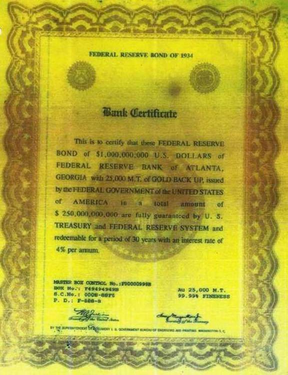 впечатляюще выглядевшие облигации Федерального Резерва, в сияющих бронзовых